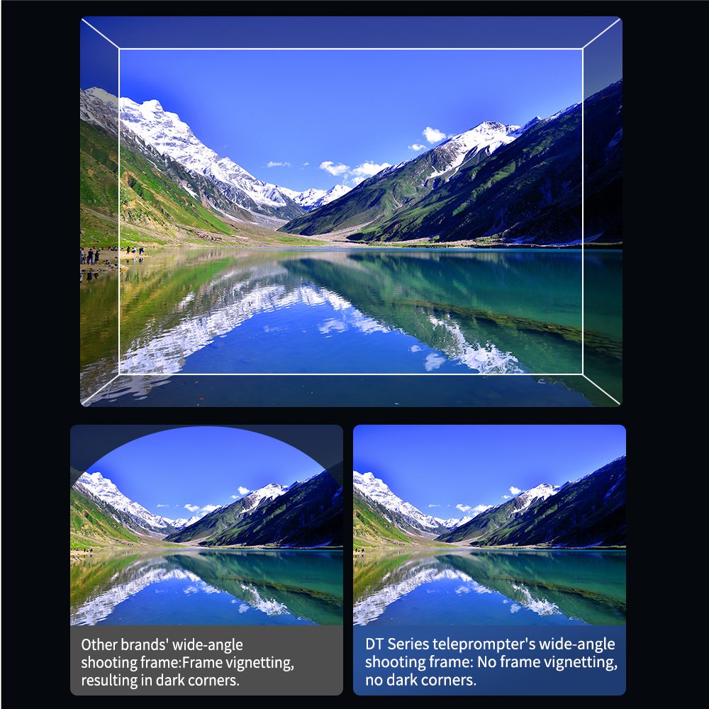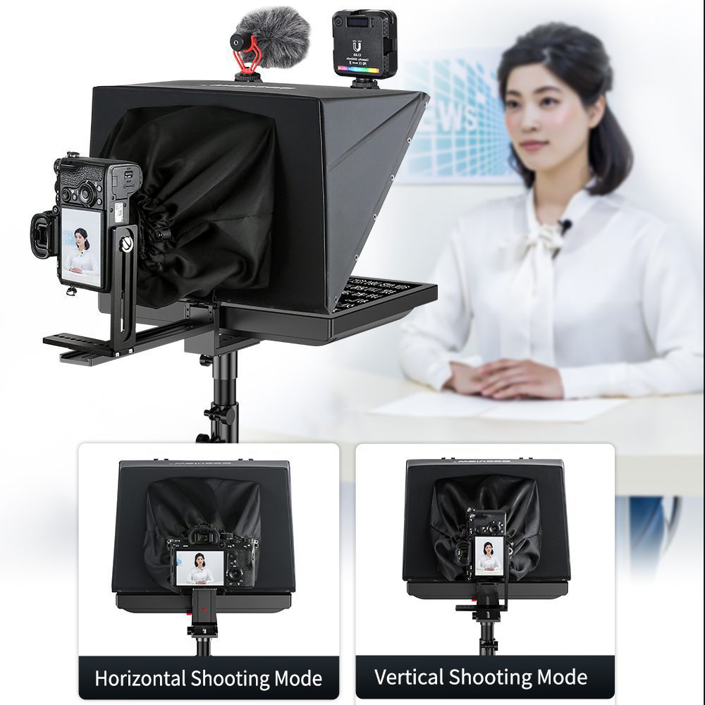 The teleprompter is equipped with a Adjustable camera mount, which is compatible with SLR, video cameras, etc. Various shooting equipment and flexible shooting methods