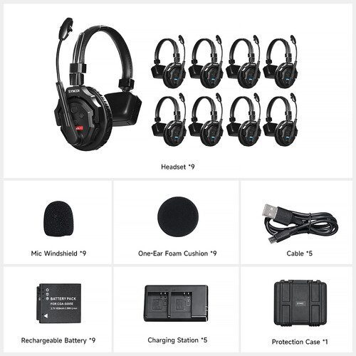 Synco X-Talk X9 Wireless Intercom System with 9 Single-Ear Headsets (2.4 GHz)